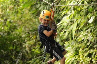 - Zip-lining high above the forest canopy, feeling the wind rush as you glide between trees deep in jungle surroundings.